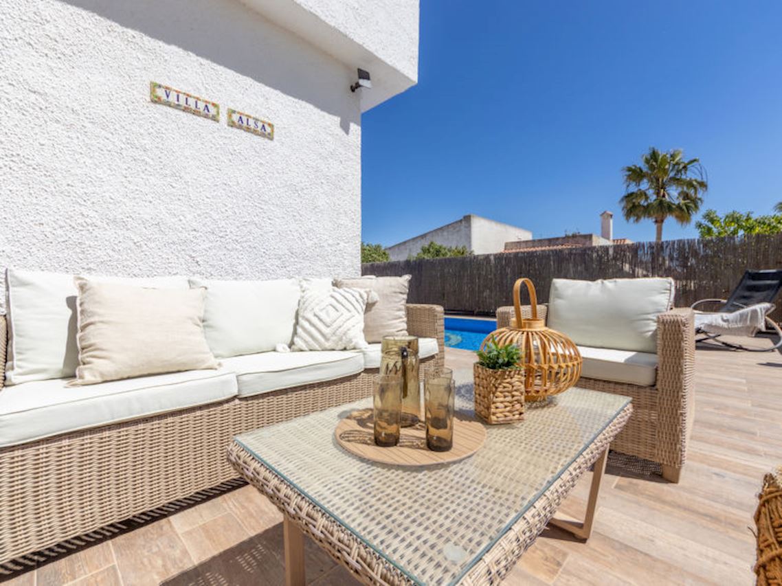 Riumar 8 km von Deltebre: Grosses, schönes Haus "Alsa". 300 m vom Meer, 300 m vom Strand. Zur Alleinbenutzung: Grundstück (eingezäunt), Schwimmbad eckig (8 x 4 m, saisonale Verfügbarkeit: 01.Jan. - 31.Dez.). Aussendusche, Parkplatz beim Haus. Einkaufsgeschäft, Restaurant, Bar 500 m, Bahnstation "L'Ampolla - El Perelló - Deltebr" 26 km. Sporthafen 1 km, Jacht-Hafen 1 km, Golfplatz (18 Loch) 15 km, Segelschule 1 km, Radweg 100 m. Nahe gelegene Sehenswürdigkeiten: Parque natural Delta del Ebro 10 m, Port Aventura 65 km, Parque Acuatico 65 km. Wandergebiete: Parque natural Puerto Tortosa Beseit 25 km, GR 92 15 km.